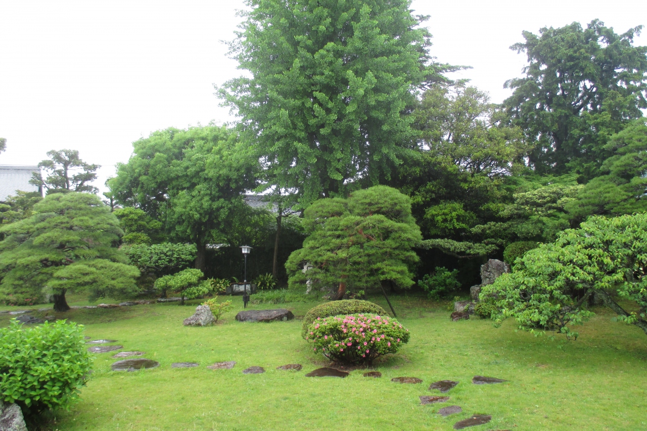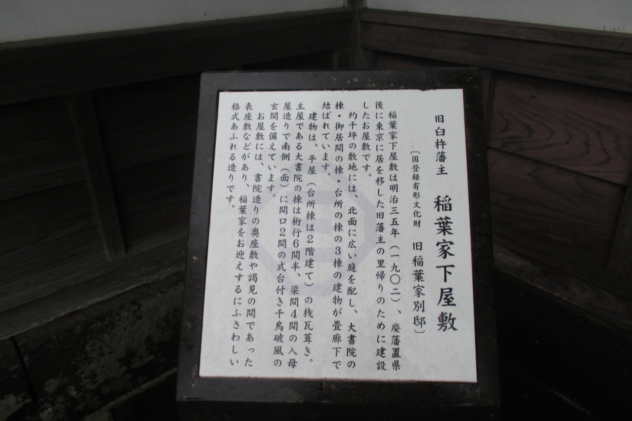 旧臼杵藩主稲葉家下屋敷は、正にお城の望める城下町といったところにありました。東京へ移住した旧藩主である稲葉家の臼杵での宿舎として、1902年(明治35年)に建築されたものだそうです。(旧藩主のためといっても、ずいぶんと時代が移っていますね)臼杵藩15代で、最後の藩主だった稲葉久通は1893年(明治26年)に亡くなっていて、息子の稲葉順通に代が変わっています。順通は77歳の長寿だったそうですから、何回かは里帰りをしたのでしょうね。お庭は名園とはいわれていませんが、広さがあり、樹木も大きくなっていますから、手入れがたいへんだろうと思いました。訪れた時も庭師が入っていました。