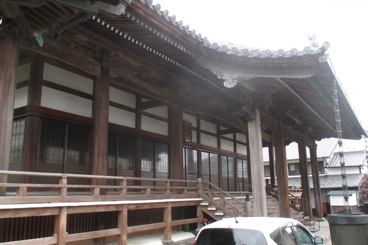 法音小道という狭い路地が二王座歴史の道に突き当たった左側に善法寺がありました。二王座歴史の道に面した鐘楼門は、大きさはありませんが、狭い場所にあるので大きくは見えました。1334年(建武元年)に、北西の末広の地に建立されていますが、平安時代末期の宇治川の戦いの武勲で有名な佐々木四郎高綱の、弟の五郎義清の孫にあたる廓玄上人が開基したと伝わっているそうです。浄土真宗のお寺さんとしては九州最古の1つで、最盛期は、末寺が肥後・筑後を中心に400ヶ寺という、相当な権勢を誇った様です。浄土真宗が東と西に分裂した時には、九州の有力寺院が西に付く中、東に付くことになったので、その権勢はずいぶんと静かなものになった様です。寺町となる現在地へは、1624年(寛永元年)に移転しています。1866年(慶応2年)に本堂、庫裡を焼失しましたが、早くも1868年(明治初年)には再建されたそうです。信徒は多いということでしょうね。山号は竹生山で、真宗大谷派のお寺さんです。
