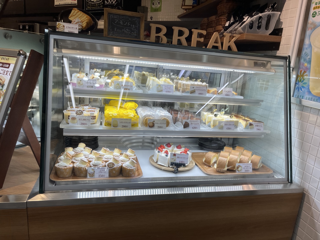 店内ガラスショーケースには 「サンドイッチ」や「ケーキ」が 並び