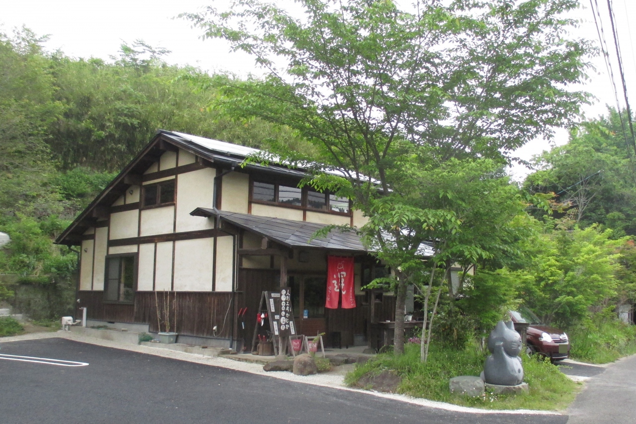 人形工房かじかは、桑畑湧水のところで、ぐるっとくじゅう周遊道路(県道30号線)から旧道へと進んだところにありました。ここは手作りの招き猫のお店です。陳列されているのを眺めると、似ているけれども同じじゃない猫がたくさんいました。これらは陶製ではなく、木造だそうです。壊れにくくて長持ちしそうです。