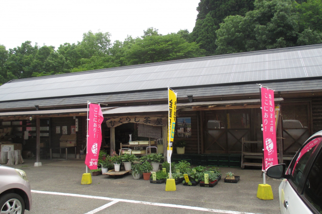 里の駅 豊後今市宿 ひぐらし茶屋は、県道412号線(奥産スカイライン)から今市石畳への分岐点にありました。地元産の新鮮野菜を直売しているお店ですが、地元の農家さんも数多く参加している様で、野菜の種類も多く、お客さんもやって来て活気を感じました。生産者と消費者が上手い関係で結びついていると長続きすると思いました。表に野菜の苗が売られていました。買って帰ってプランターで育てたくなりました。また、横には地鶏の食事処もありました。