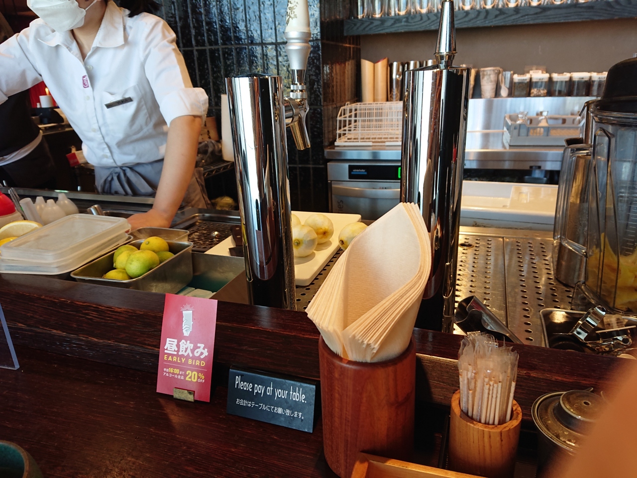 一人で入店すると、入り口すぐの大きなテーブルではなくカウンターの一番奥に案内された。