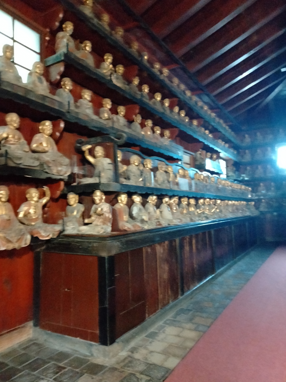 怒り/笑い/泣き/思い等の、様々な表情の羅漢様が静かに並んでいました。