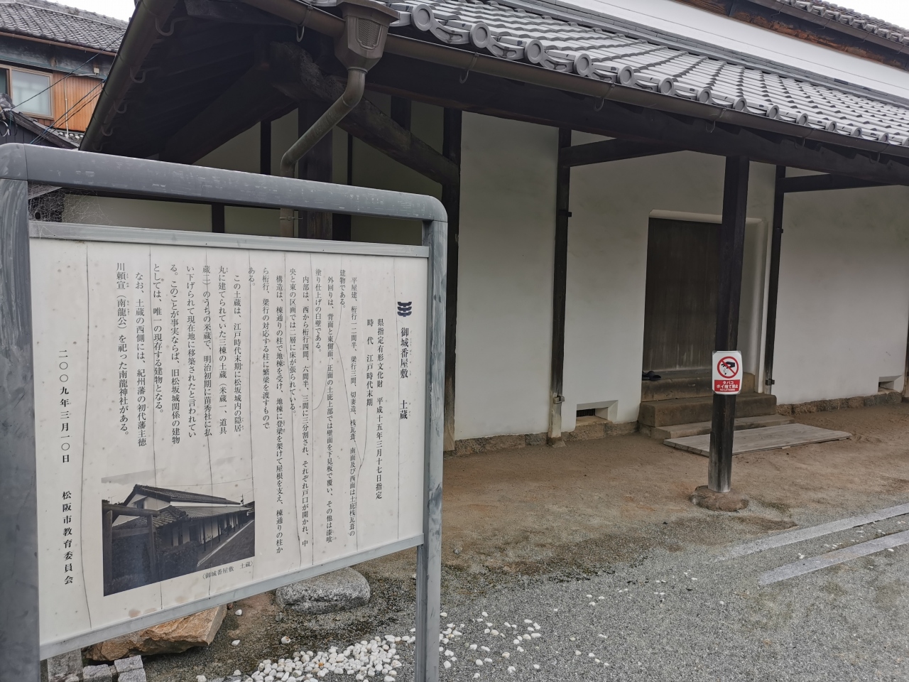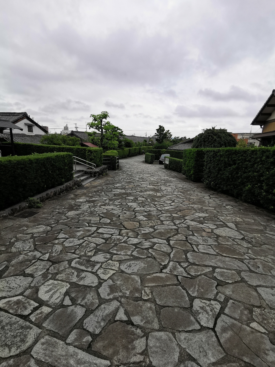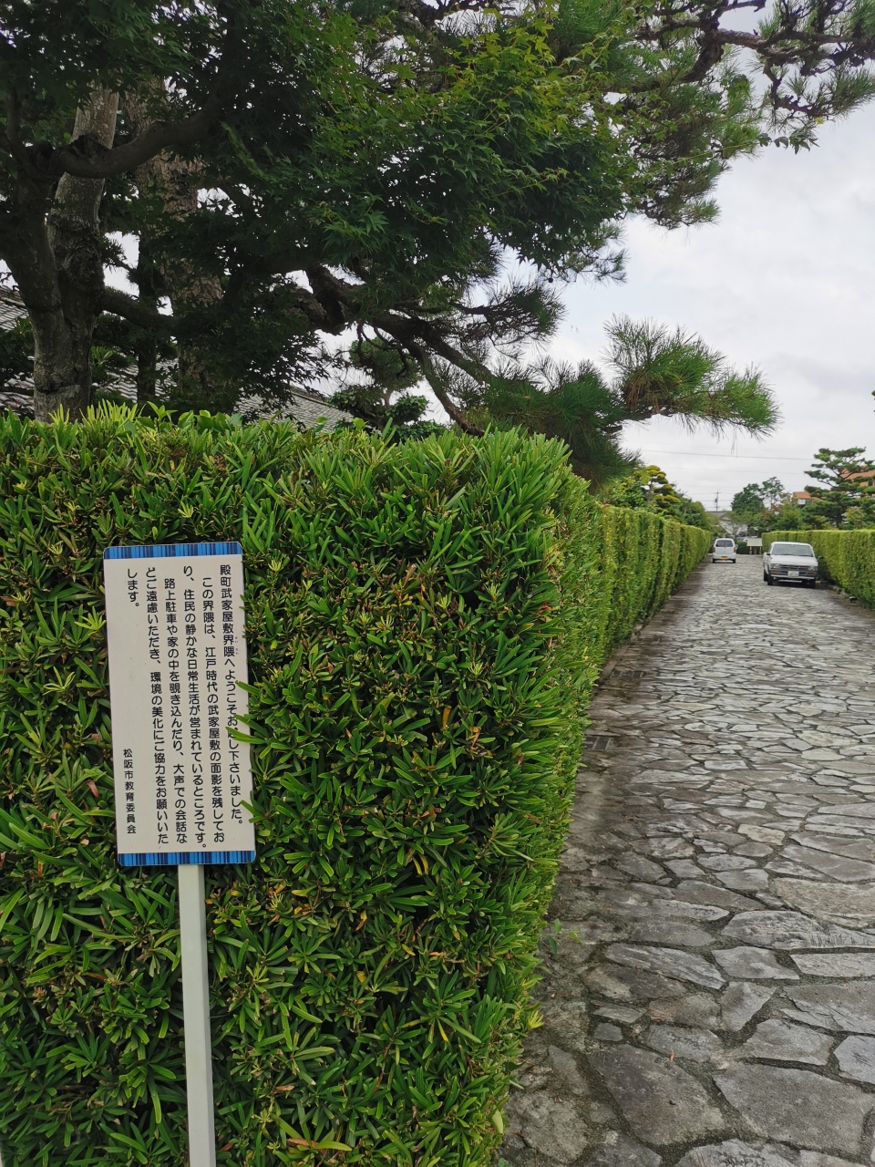 松阪城址を見て回った後、松坂城裏門跡を出た先、道路挟んで。立派な石畳が走っています。両側に緑の生け垣が良い感じの武家屋敷が並んでいます。御城番屋敷は松坂城を警護する「松坂御城番」という役職の武士が住んだ屋敷だそうです。普通のご家庭なのですが、一部は内部公開されてました。瓦屋根の木造建築で綺麗に整備されて維持されていました。