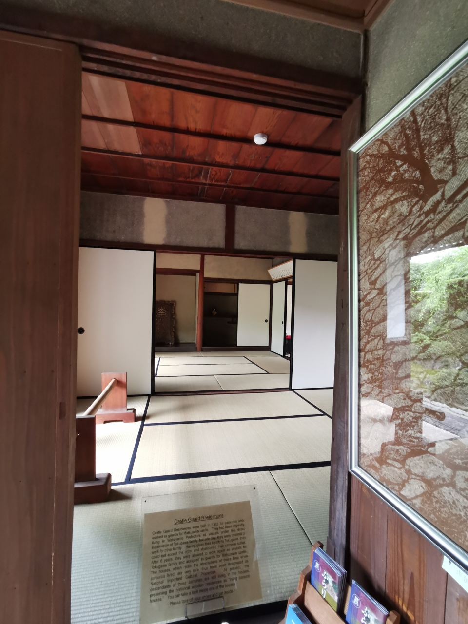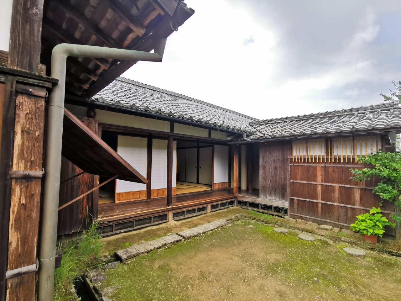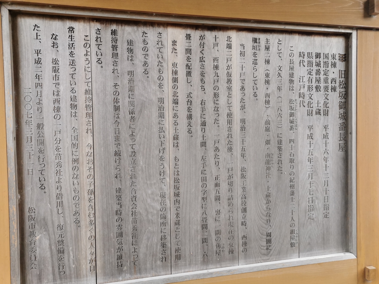 松阪城址を見て回った後、松坂城裏門跡を出た先、道路挟んで。立派な石畳が走っています。両側に緑の生け垣が良い感じの武家屋敷が並んでいます。御城番屋敷は松坂城を警護する「松坂御城番」という役職の武士が住んだ屋敷だそうです。普通のご家庭なのですが、一部は内部公開されてました。瓦屋根の木造建築で綺麗に整備されて維持されていました。