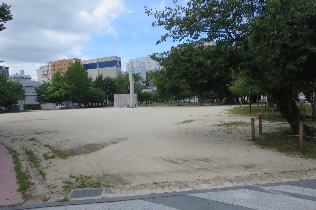 福岡市地下鉄中洲川端駅から川端商店街を抜けるとあります。福岡市博多区では桜の名所にもなっています。訪れたのは平日の昼食時間帯でしたので、周辺はビジネス街に勤めている方が木陰でお弁当を持参して食事をしているのを見かけました。 秋にはビールのイベントも毎年(コロナで数年はなかったようです)開催されている場所でもあります。また公園の真ん中には昭和40年に建てられた「戦災記念碑:があります。