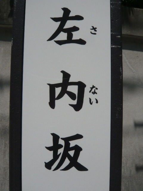坂自体の勾配は、かなりきつく、左内坂の道路の表面には、滑り止めが施されています。