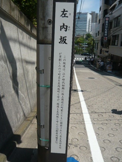 江戸時代初期、この坂の上にあった町屋とともに坂が造られました。その事業を推進した島田左内の名前に因んだのが、佐内町や左内坂です。