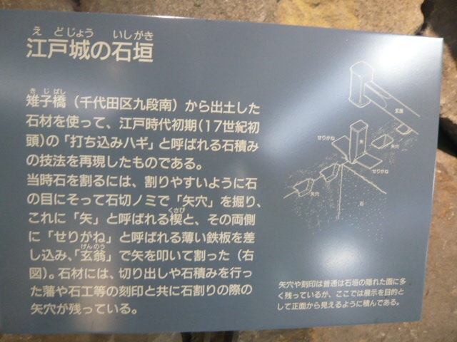 また、江戸城に使われていた石垣を再現して、実物の石垣として、展示しています。