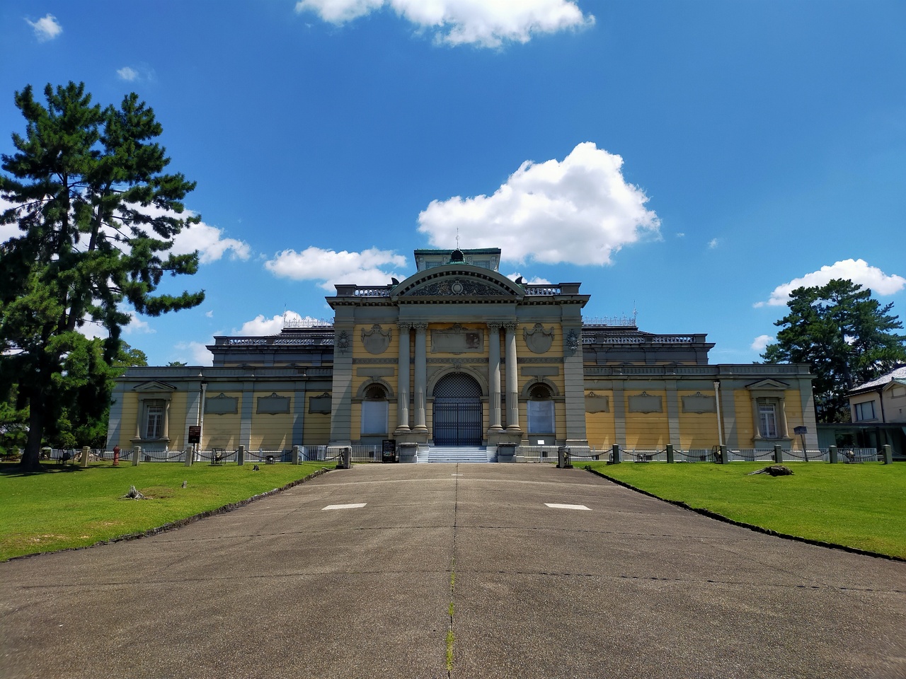 奈良国立博物館は明治27年竣工のレトロ建築です。片山東熊が設計を担当し、奈良県最初の西洋建築として知られています。シンメトリーのフォルムが美しく、様々な角度から見ても絵になります。近辺には写真スポットの案内もありますので、お気に入りの角度が見つかると思います。洋風建築かと思いきや、瓦屋根の建物もあり、面白いです。