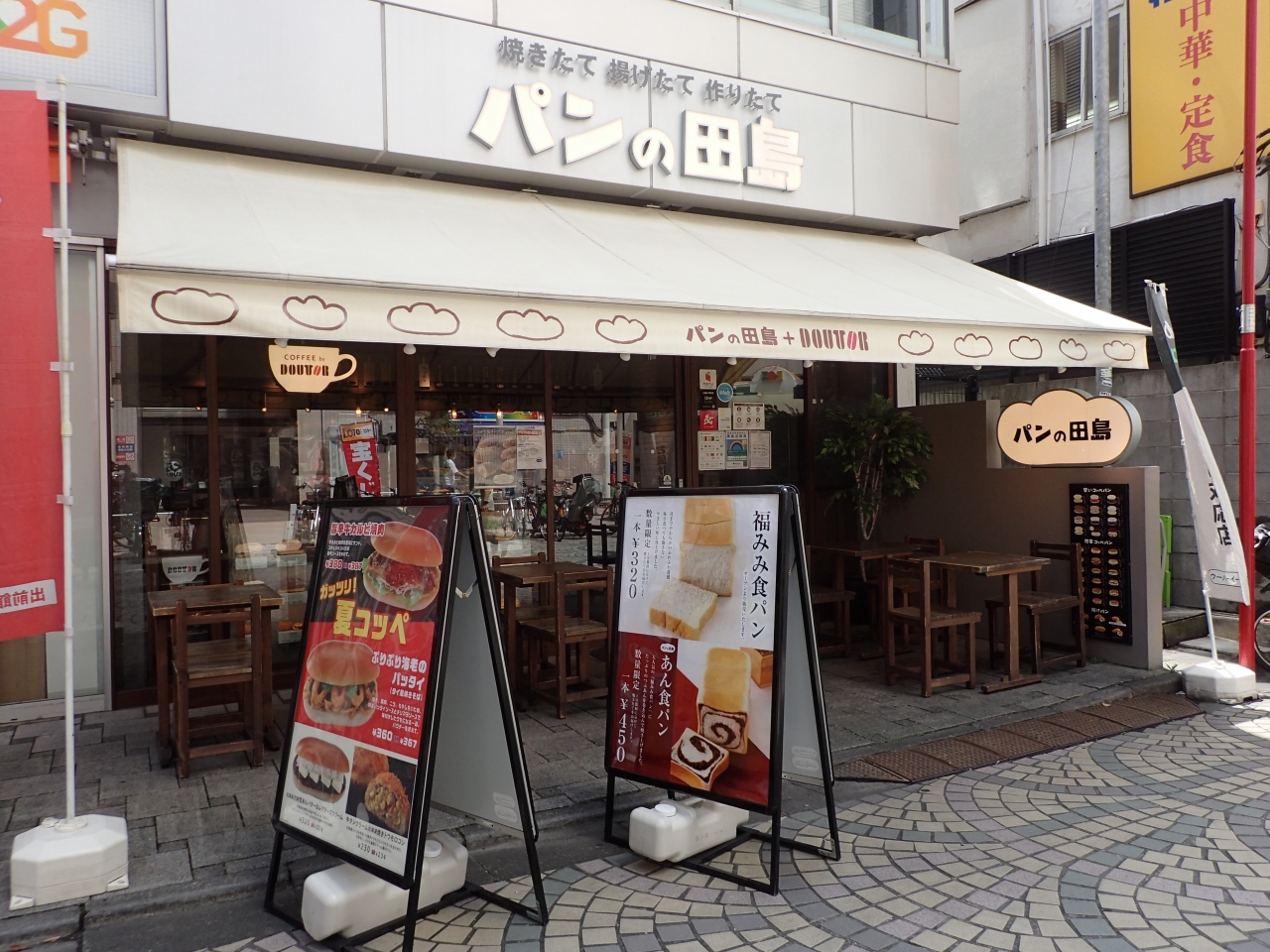 浅草ロックスにあるパンとコーヒーの店です。ドトールコーヒーが運営しているらしいですが、コーヒーはパンの田島専用のオリジナルとのことです。パンはコッペパンで、店内で焼いており、注文を受けてから具材を詰めています。
