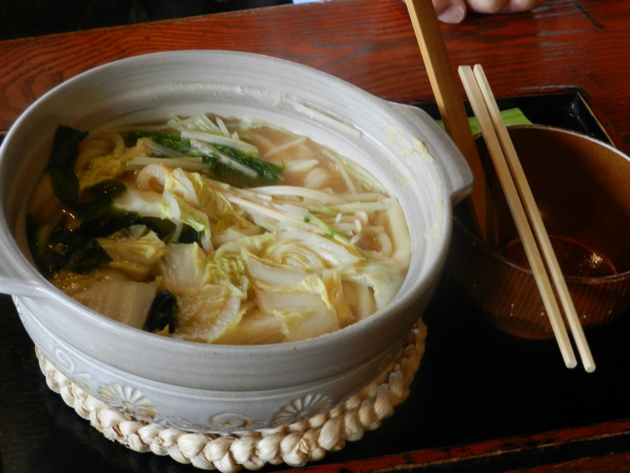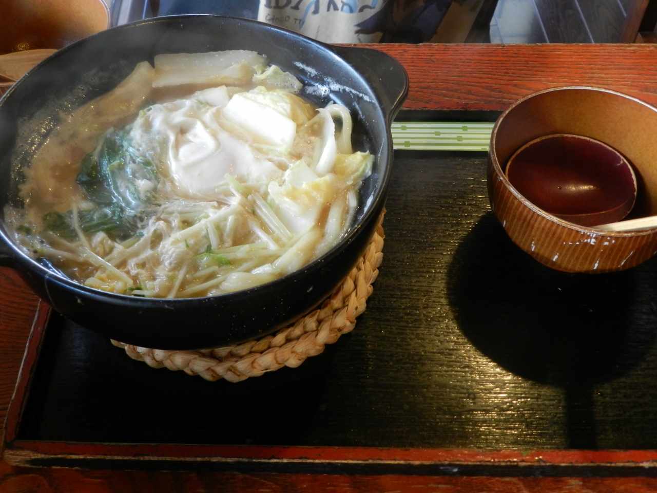 煮込み系のうどんがこの店の名物だということで、連れがオーダーした信州味噌煮込みうどんのスープを少しいただきましたが、これもけっこう美味しいと感じました。