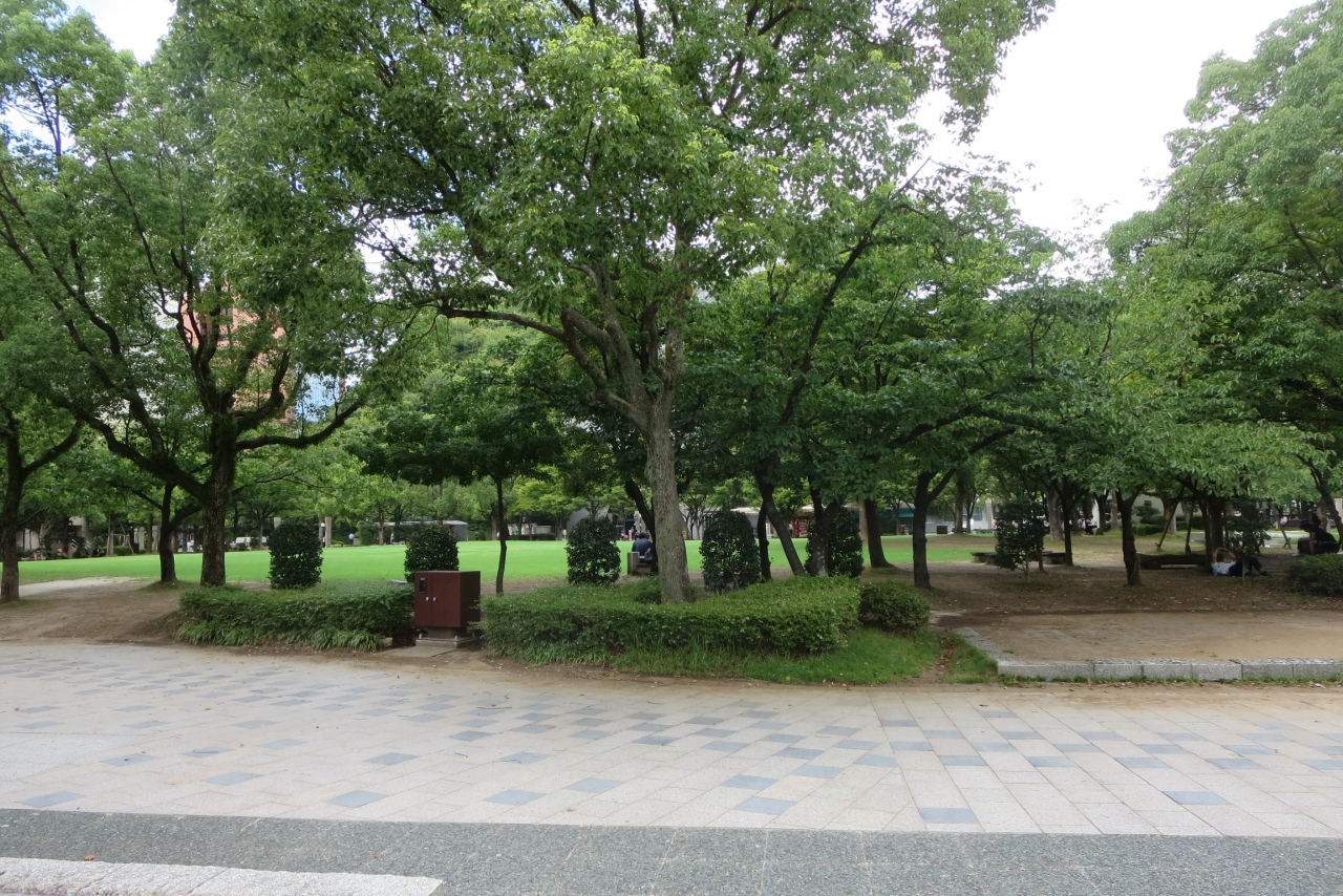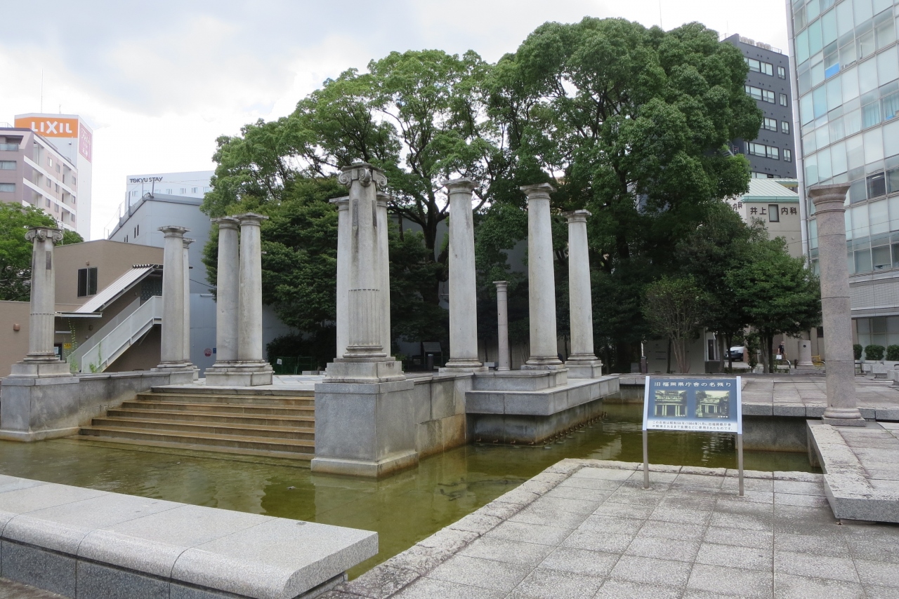 福岡市の中心部である西鉄天神駅から徒歩3~4分のところにある公園です。旧福岡県庁舎を東区に移転した跡地に造られました。総面積は約3万m2ありますので、緊急避難場所にも指定されています。公園内には旧福岡県庁のギリシャ建築のような柱などが残されています。すぐ敷地北側にある複合施設アクロス福岡は南側の階段状の壁面に植栽が施され、この公園と一体感が生まれ、自然豊かな空間を形づくっています。県民憩いの公園で、昼食時間は近くのサラリーマンが休憩を取っていたりしています。。