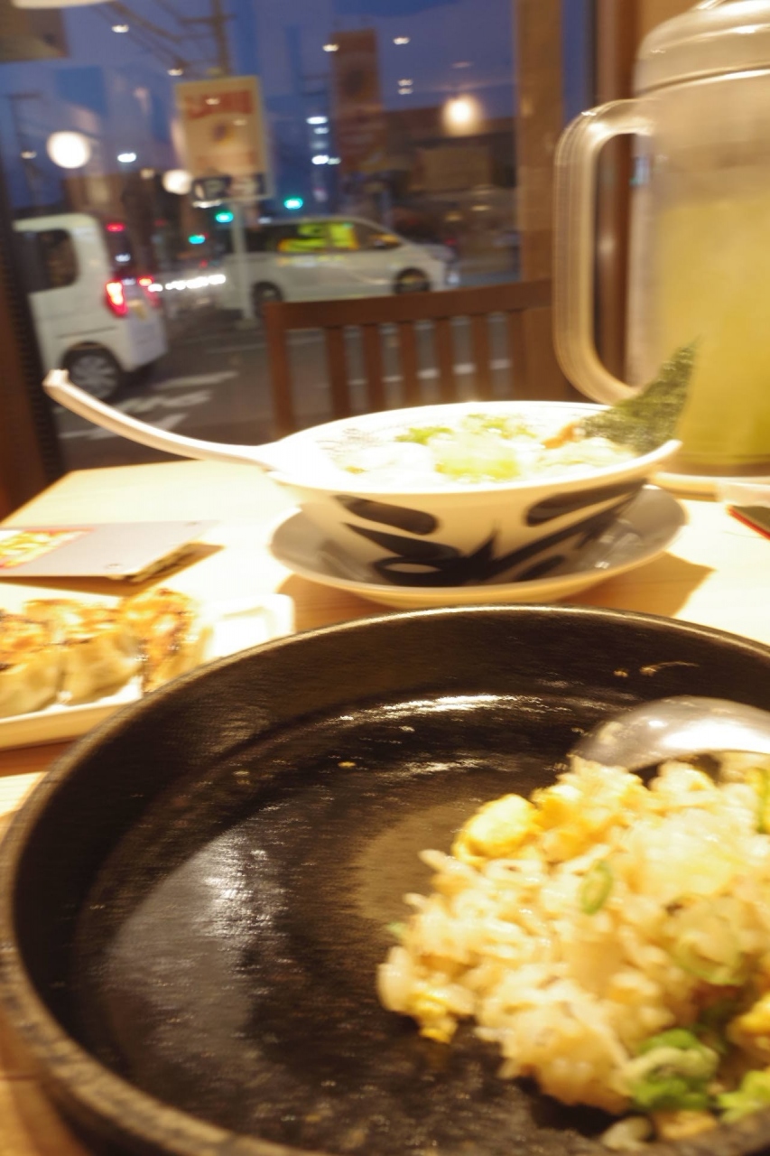 駐車場も広く国道沿いで車で行く人には便利な立地。建物も綺麗でした。肉そば+丸源餃子3個+鉄板卵チャーハン小のチャーハン餃子セットを注文。餃子も一個づつ卓上の調味料で味変えて楽しんだり、肉そばも、鉄板チャーハンおいしくて良かったです。