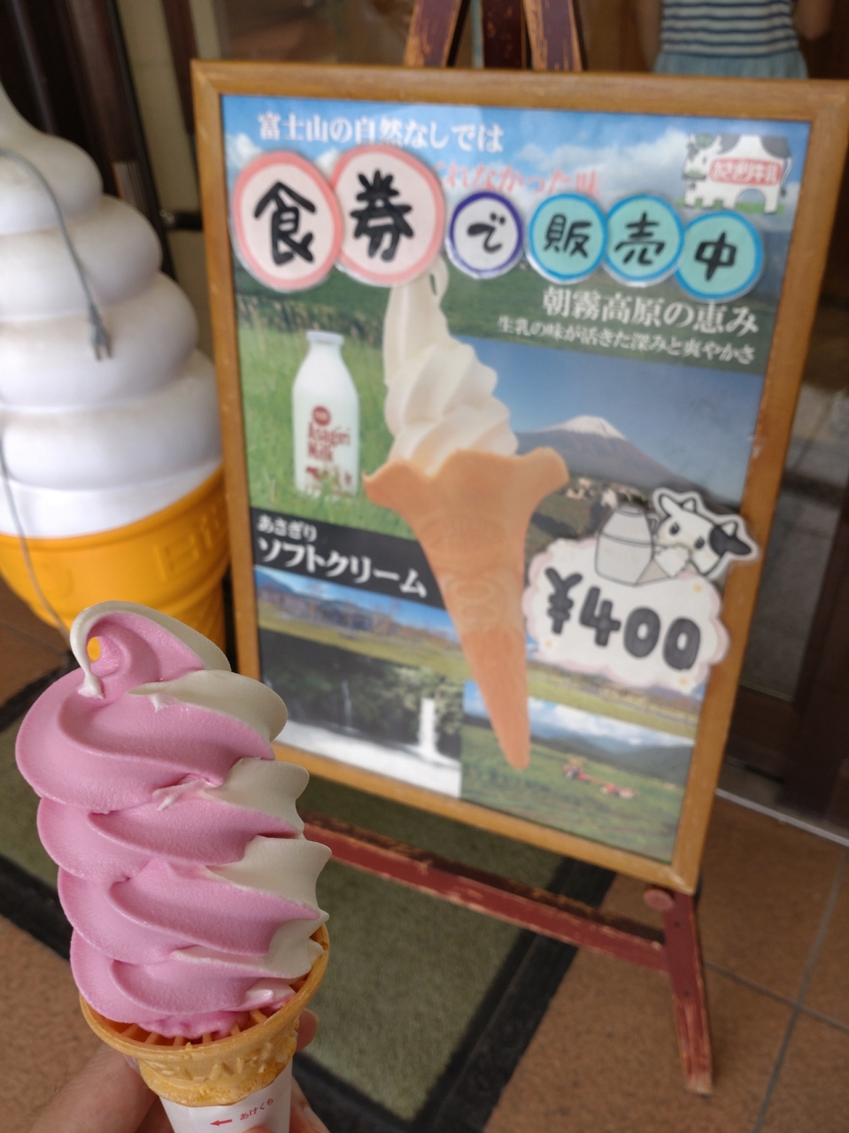 夏の朝に訪れました。山梨側から樹海の中を走り抜けると突然視界が開けた草原につながります。そこが朝霧高原。その名の通り朝から靄がかかって富士山はおぼろげにしか見えませんでした。牛にとっては最高の環境かも。牛乳がおいしいはずです。