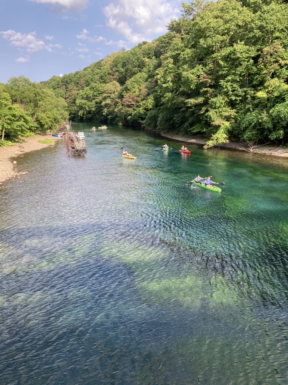 その透明度がハンパない。澄んだ水は光に照らされ青色に。「支笏湖ブルー」きれいでした。