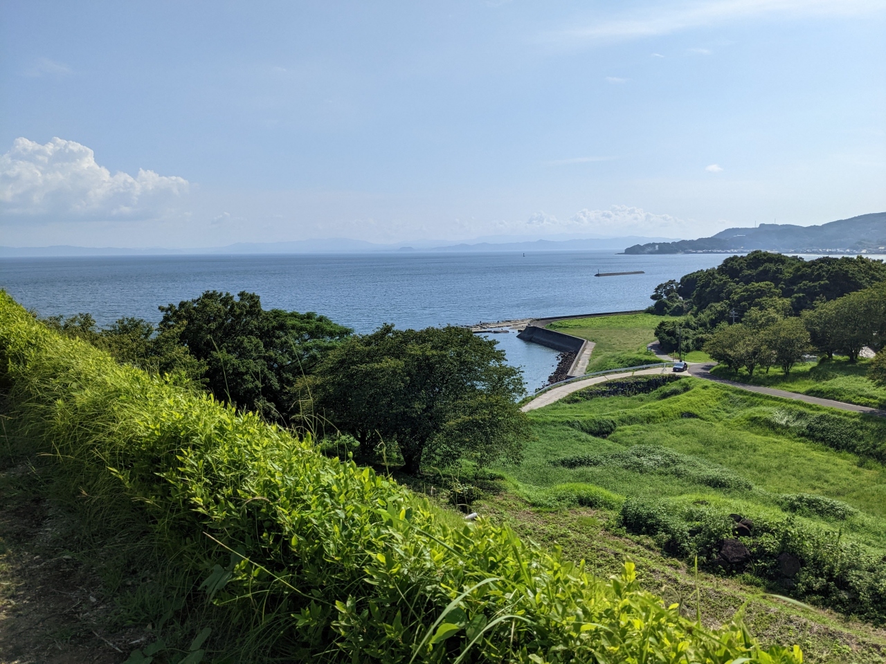 島原の乱のときに天草四郎以下3万数千名の一揆衆が立てこもった城跡。一揆の跡も前も廃城なので何も残っていません。ちょっと石垣が残るぐらいです。広大な原っぱといった感じで、駐車場から本丸跡までは1キロ弱あります。炎天下の中ではきつかった。。
