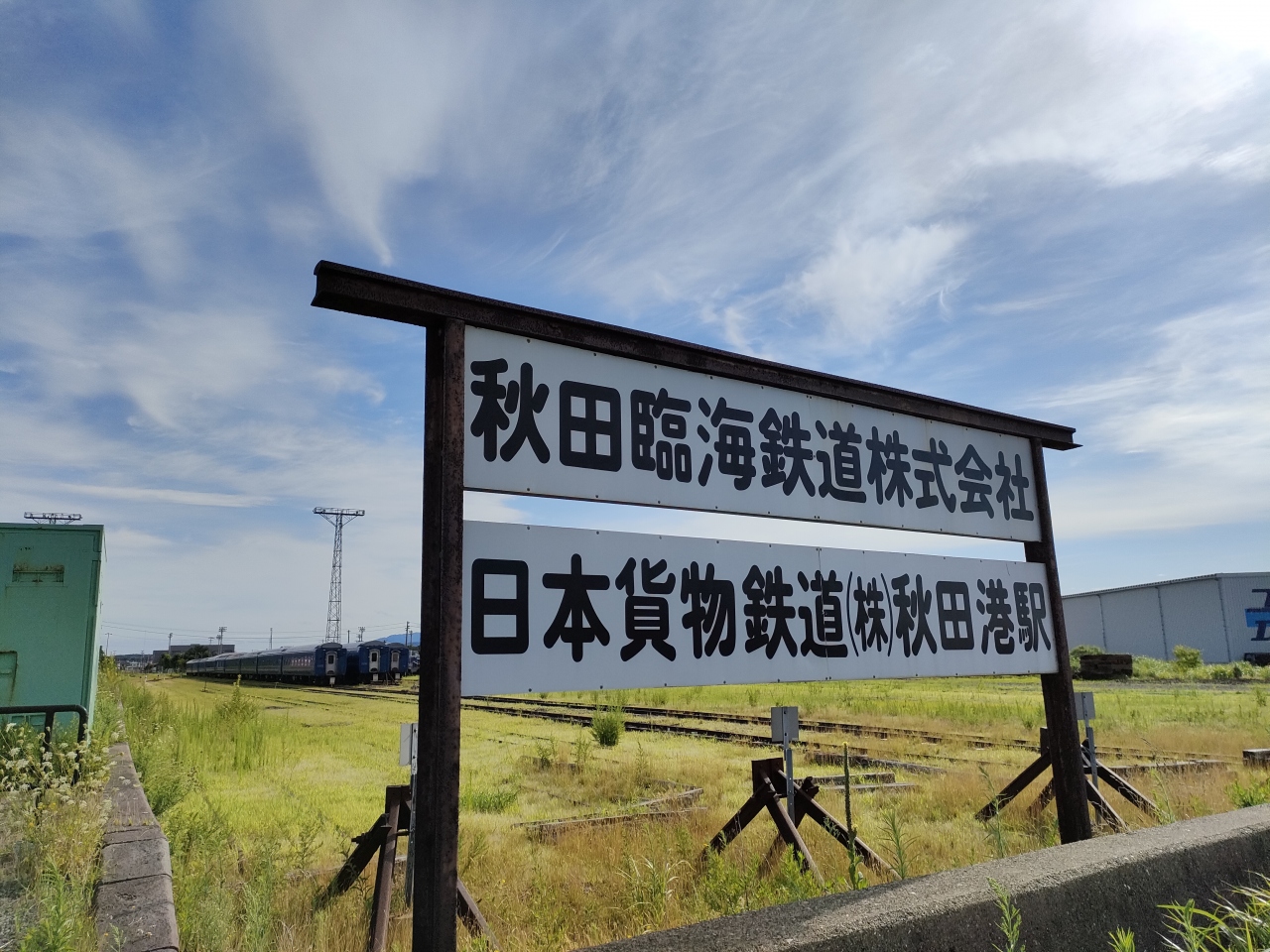 そして、その近くに昔は船に直接、貨物輸送をしていたのか、広い操車場があり、秋田港駅が設置されています。