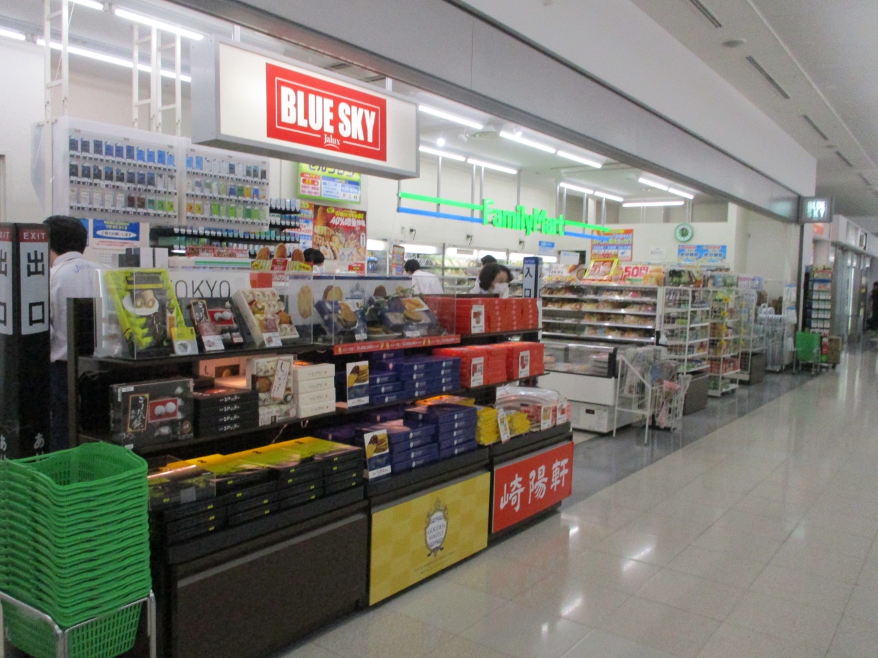 羽田空港の第一ターミナルのあちこちにあるJAL系のショップ。搭乗口の近くにも、空港の出入り口付近にもあります。ブルースカイという名前ですが赤い看板です。のみものやお弁当やお土産などそろっています。JALカードを使うと割引があるのが嬉しいです。