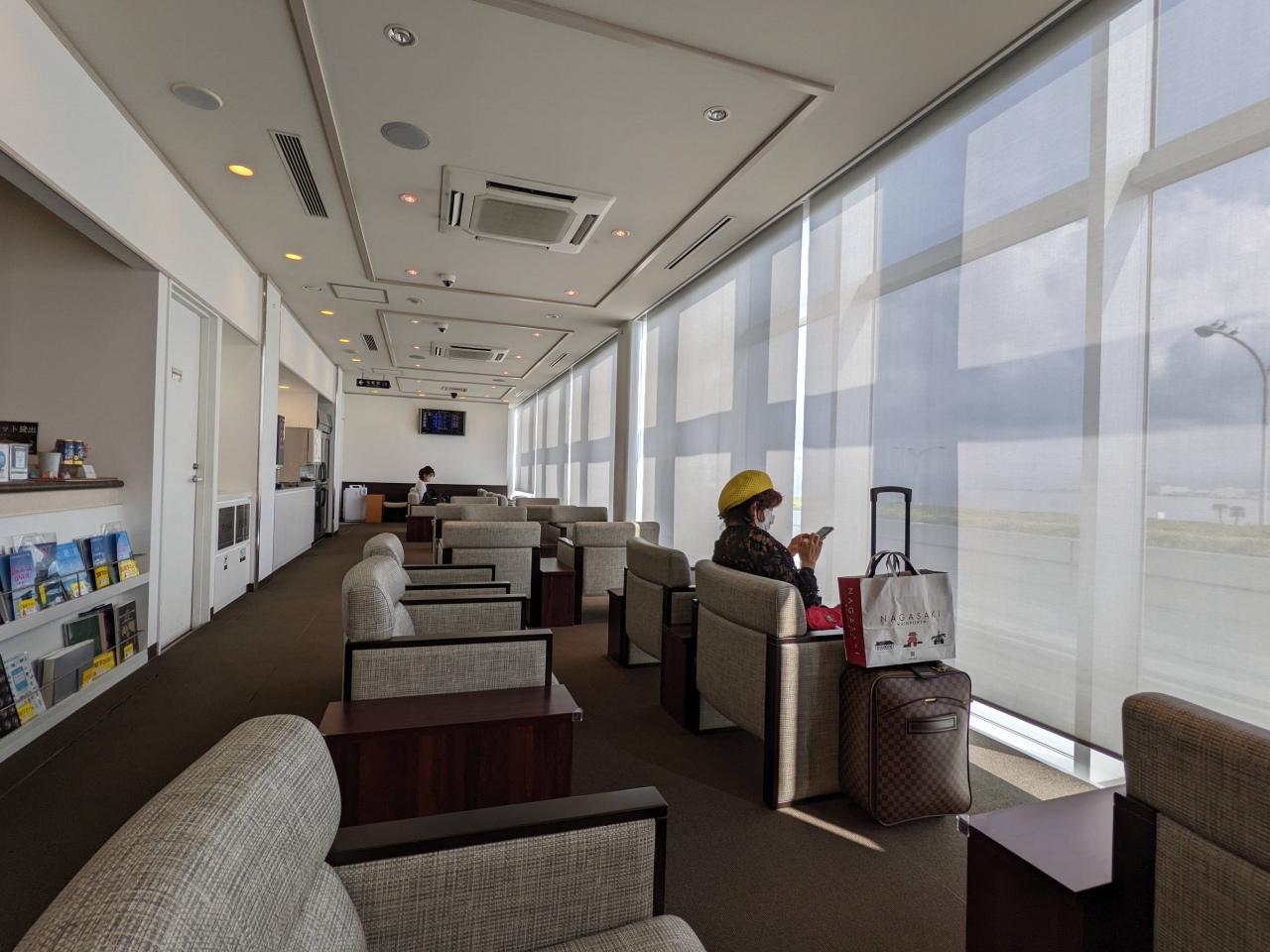 長崎空港にはANA,JALのキャリアラウンジはないですが、クレカのカードラウンジがあります。保安検査場の目の前にあって、直前まで使えて便利です。ソフトドリンクの種類は標準的です。おもったより広めで快適でした。