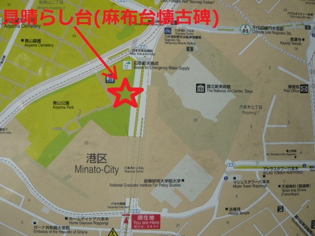 東京都が計画する工事計画により、青山公園の旧軍施設を見渡すことができる見晴らし台の麻布懐古碑を確認できませんでした