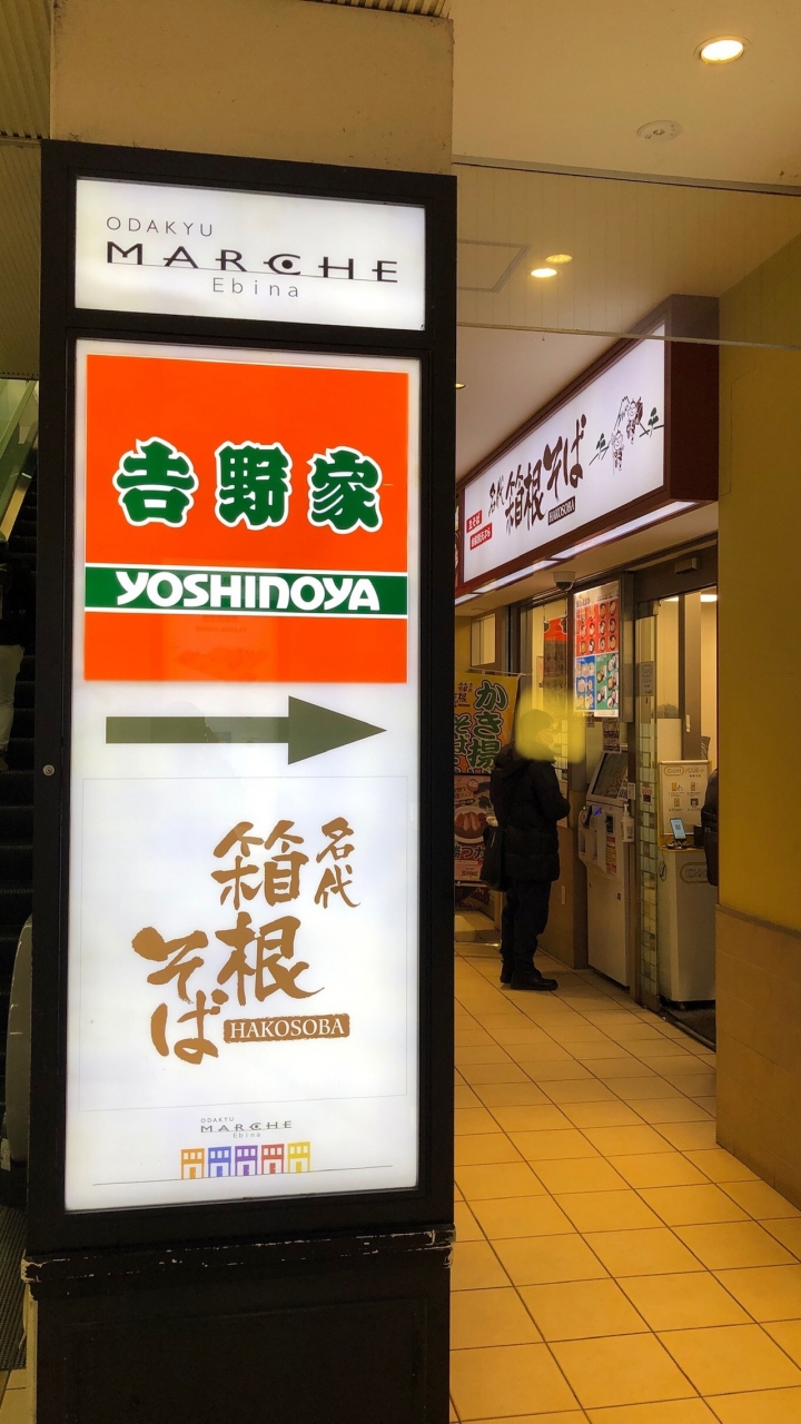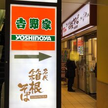 小田急線の主要駅にある立ち食いそば屋さんです。店によっては、イス席もあります。海老名には、改札内と改札外に、2つの箱根そばがあります。こちら海老名東口店は、改札外にあります。階段の下にひっそりとあります。