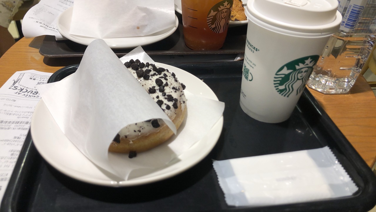 朝早い便でしたので、友達と時間調整のため、いつものスターバックスで甘いものとコーヒーで朝食にしました。