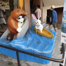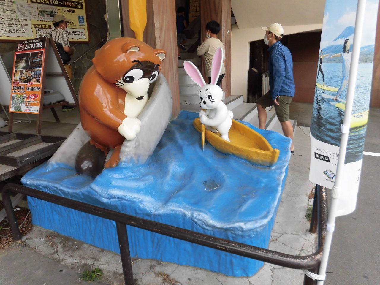昔話の「カチカチ山」の舞台になったと言われており、ロープウェイ乗り場にはタヌキとウサギのモニュメントが置かれています。