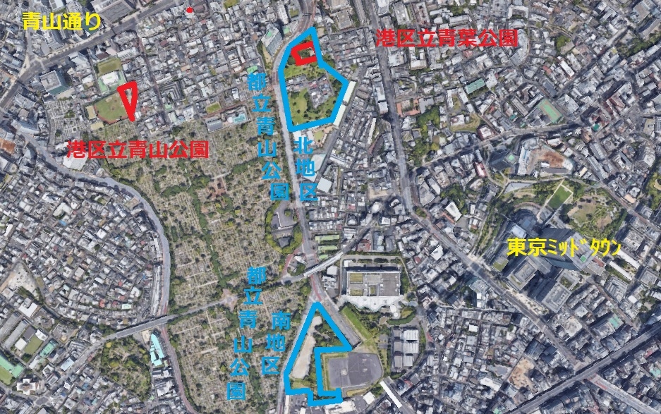青山公園に何回も行きました。間違え易い点を補足します。都立公園部分と港区立部分の管理面です。