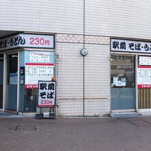 JR西宮駅南口の複合施設・フレンテの1Fにあります。駅の階段を降りたところに店の入口があるので分かりやすいです。「駅前そば」とかかれた看板が目立ちます。かけうどんorそばが230円です。立ち食いではなくイスもあるのでうれしいです。