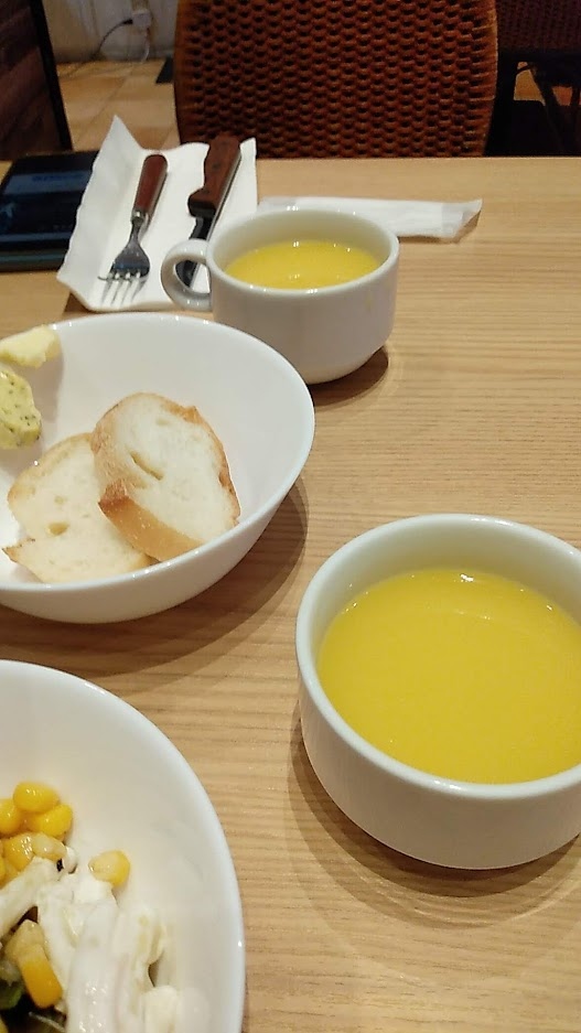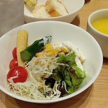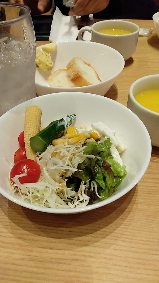 ここは、ご飯、パン、サラダ、コーンスープが食べ放題。