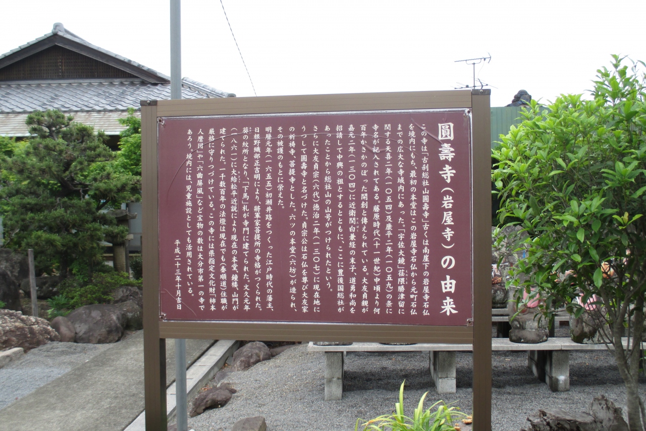 円寿寺は岩屋寺石仏から緩やかに丘を登っていく途中にありました。山門や鐘楼は1861年(文久元年)府内藩10代藩主・松平近説によって建立されたものです。同時に本堂も建立されたそうですが、訪れた時は新しく建て替えられていました。シロアリとかの被害だったのでしょうね。境内に文学庭園がありました。大分市の文学史にもっと光を当てましょうという、以前の市長・上田保さんの提唱に応えたものだそうです。これを応援して、以前の県知事・平松守彦さんも植樹をしてありました。