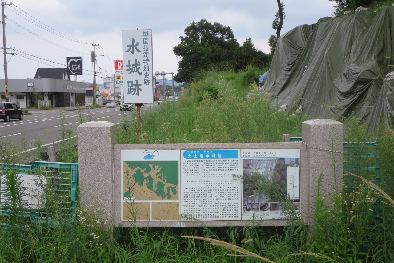 7世紀になって朝鮮半島に新羅と百済の勢力争いが活発になります。日本は663年に百済の援軍として白村江に派兵をしますが、結果は敗戦となります。その後に唐と新羅の連合軍が来襲するのではないかと恐れた日本は、大宰府の防衛線として四王寺山~基山にかけて大水城を建設します。大水城の西方の谷には規模の小さな小水城を建設します。その一つがこの「大土居水城跡」です。道路沿いに「水城跡」と表示されていますので、その横には案内板があり、少し歩くと階段があるので上まで上れます。距離は長くないのですぐに水城の上まで上れます。