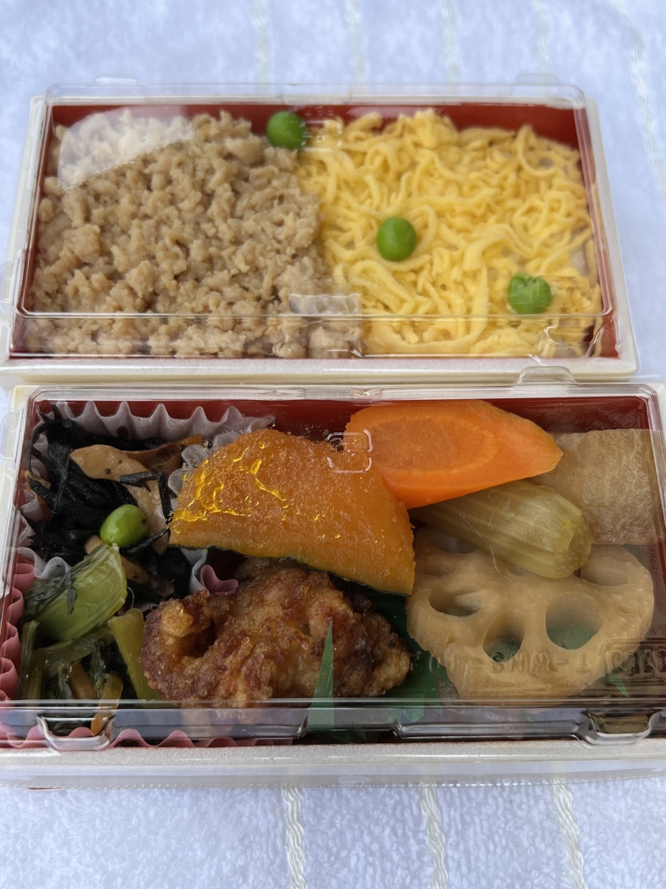 鶏そぼろも濃いめの味付けで、追加でご飯が欲しくなりました。
