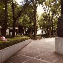 霞ヶ関駅B1a出入口の横にあります。整備されてされた草木が植わる場所に説明の看板があるのみで、敷地は東京地方裁判所のエリアにありました。日比谷公園が道を挟んで目の前にあり、江戸時代に屋敷があったとは思えない場所でした。