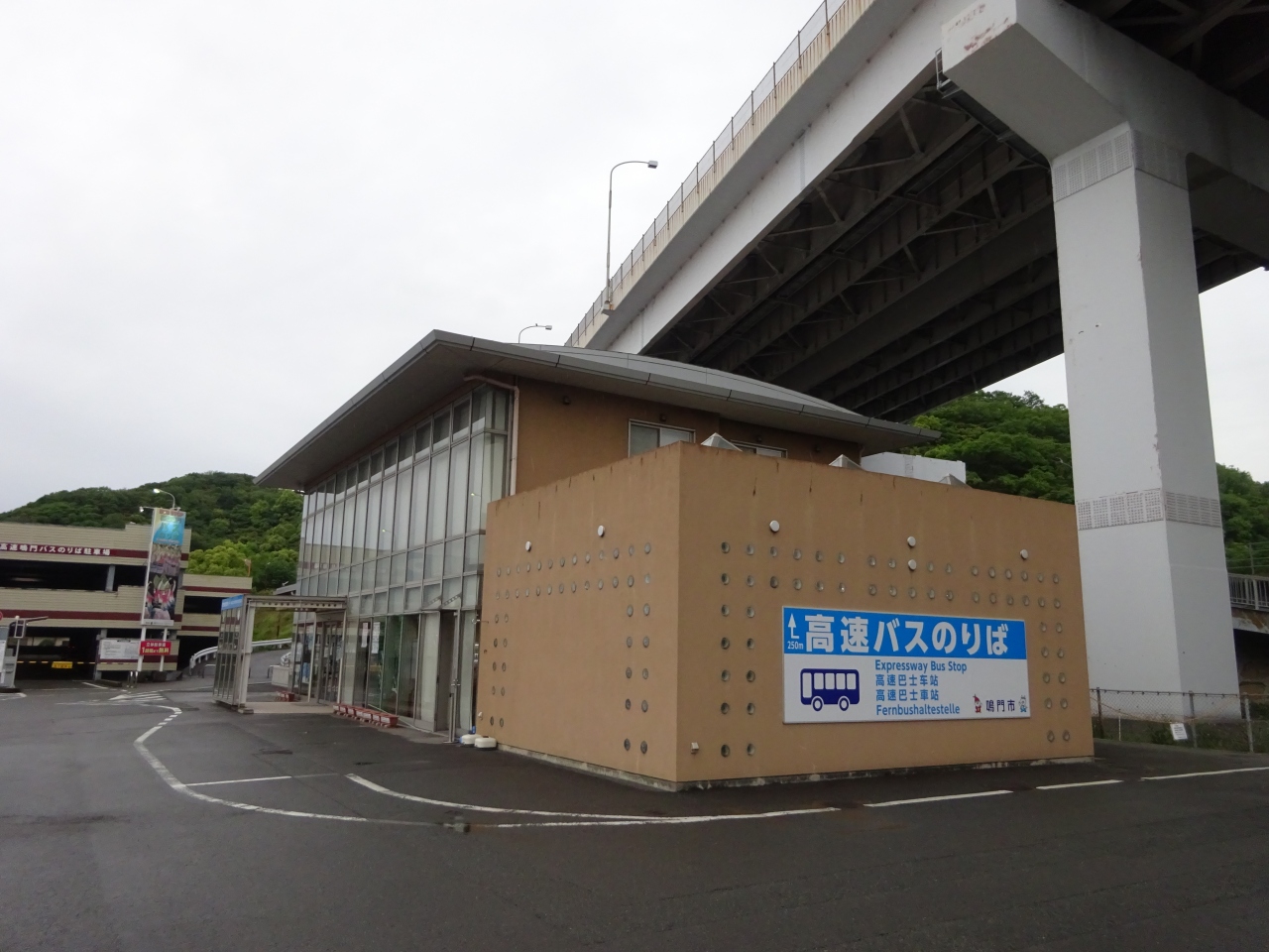バス停下の通り沿いには鳴門市の観光センターがあり、ここがチケット売り場と待合室を兼ねていて、ある意味鳴門市の表玄関のようになっています。そしてそれに隣接してすろっぴーの乗り場があり、ここからほぼ山の上にあるようなバス乗り場まで、雨でも濡れずに行くことができます。