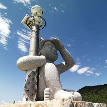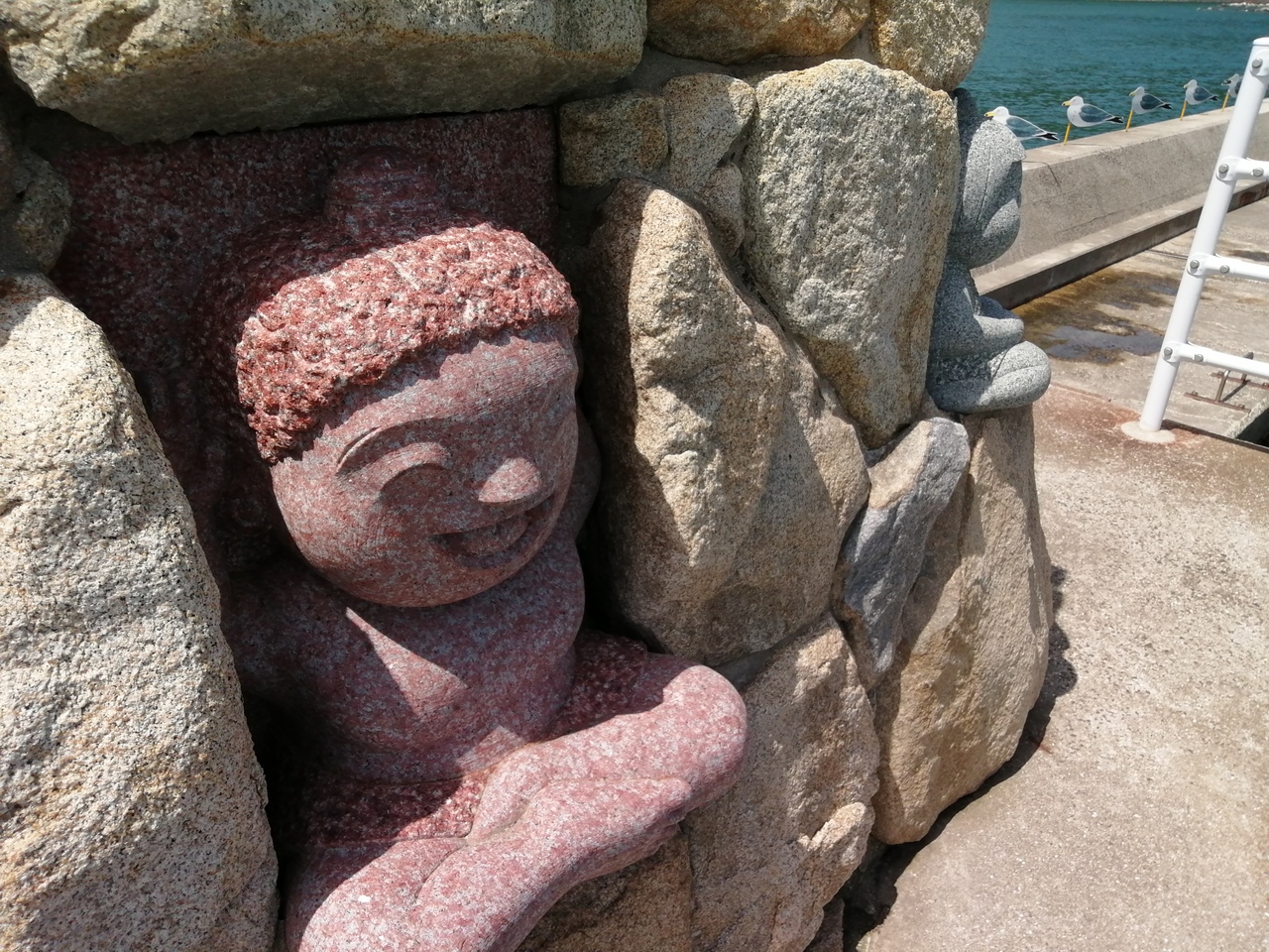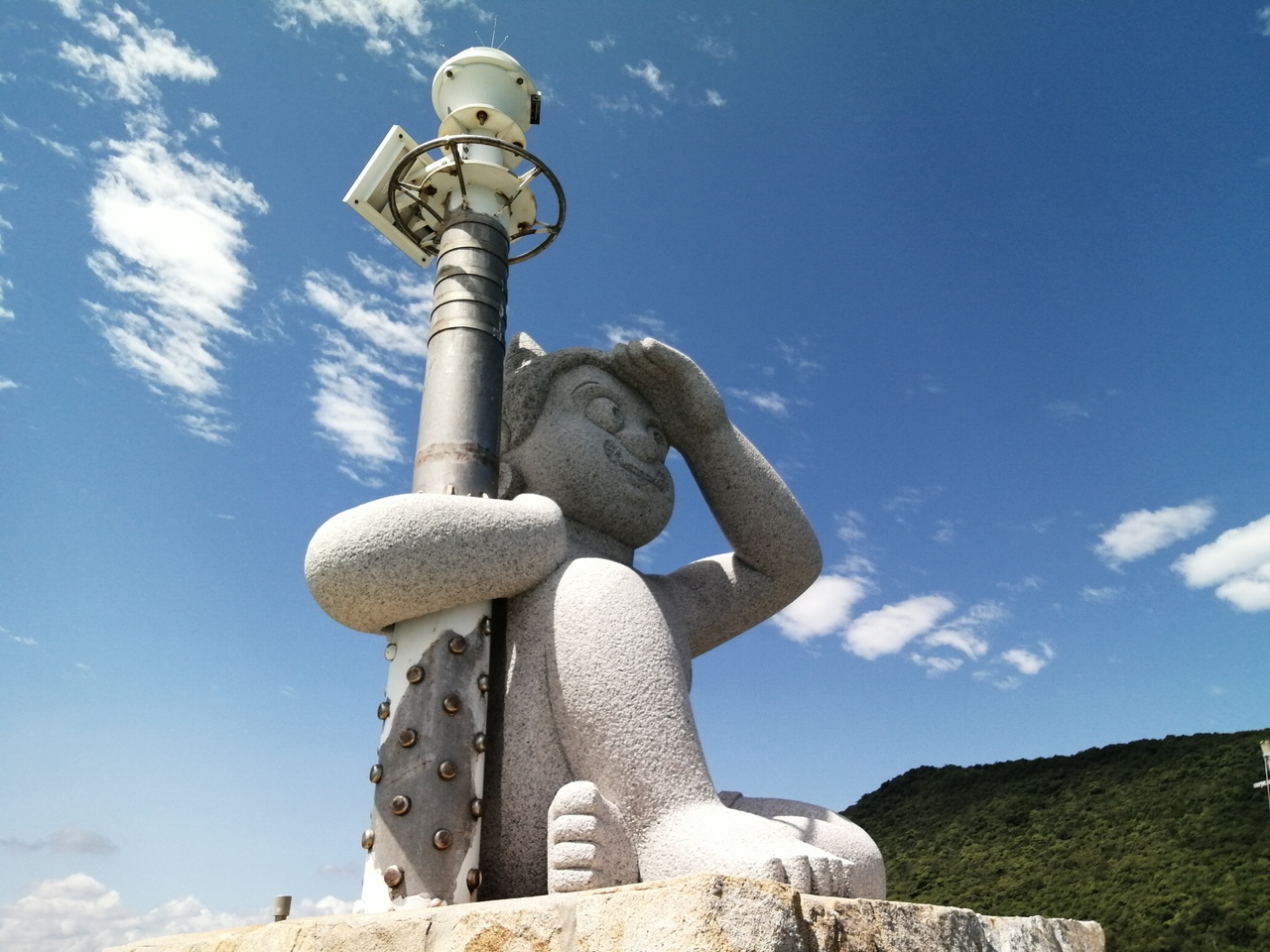 女木島の港の防波堤の先端に鎮座。アニメチックでとってもかわいらしい鬼のオブジェです。こん棒を抱え、額に手をかざし集落方面を眺めてる。いったい何を眺めているんでしょうか。船で入出港する際に船上からも見えますが、せっかくなのでちゃんと防波堤の先まで行って眺めてみて下さい。