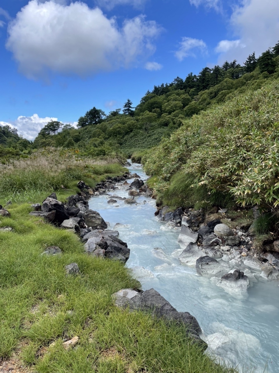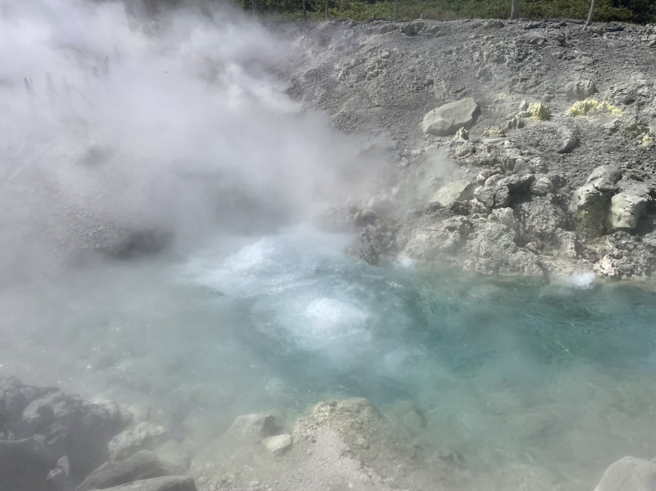あちこちから湯煙が立ち上がり、一番蒸気が上がっていた大噴ではぼこぼことすごい勢いでお湯が沸いているのが見えました。脇を通るときに蒸気を浴びただけで体がポカポカしてきました。すごい!