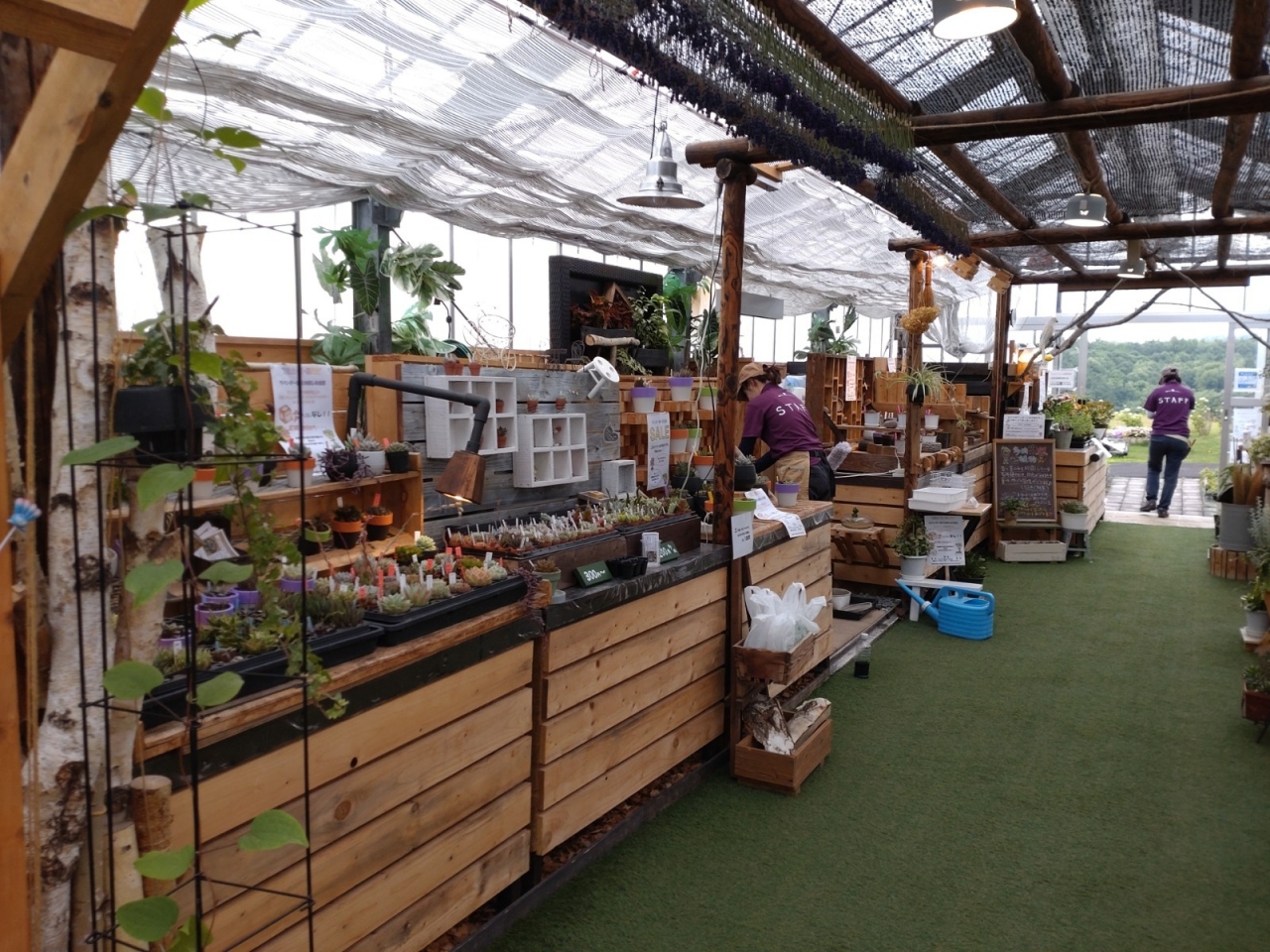 滝野霊園の中にあり、ラベンダーと頭大仏がよく見える場所にあります。お墓に備える花は別に売店があるのでしょうか、お洒落な雰囲気で色々なサボテンと花、雑貨類がありました。ラベンダーの季節はお店も賑わいそうです。