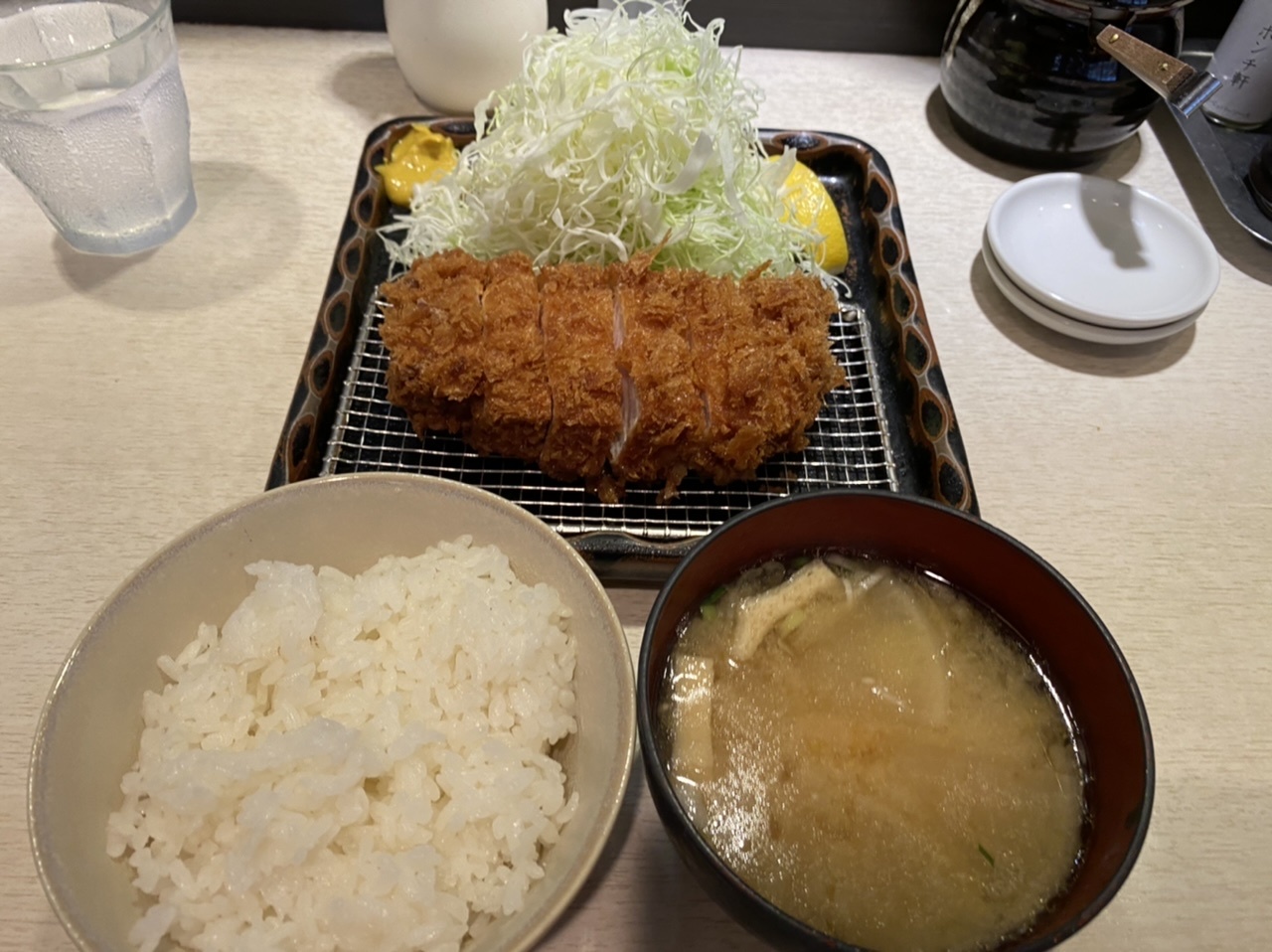 お店の前を通り掛かるといつも人が並んでいるので気になり行ってみました。ランチは11時15分からで既に2,3人が並んでいました。特ロース2,400円を注文。値段は高めですが、豚は沖縄県産のようです。分厚い豚かつの中心はほんのりとピンク色です。柔らかくて肉の旨味もありご飯が進みます。ウスターソースとの相性がよく美味しかったです。