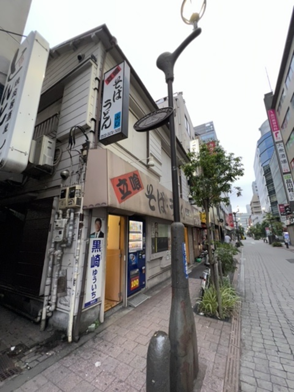 品川駅港南口を出るとすぐにあります。富士そばとは違います。昼間は立ち食い蕎麦屋さんで夜は立ち食い飲み屋になるようです。