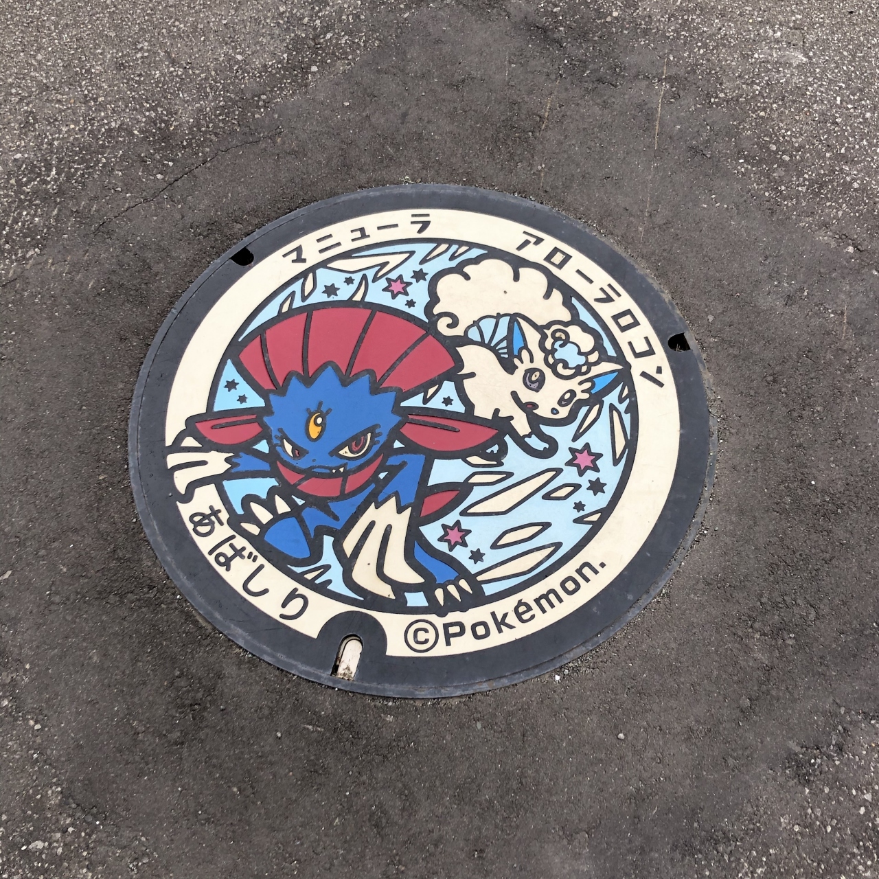 駐車場への入りは広く充分なスペースがあります。ここに来た目的の一つはポケモン柄のマンホール蓋(ポケふた)があるので見に来ました。建物の右側の出入り口付近で発見、汚れもなく発色も良く保存されていました。