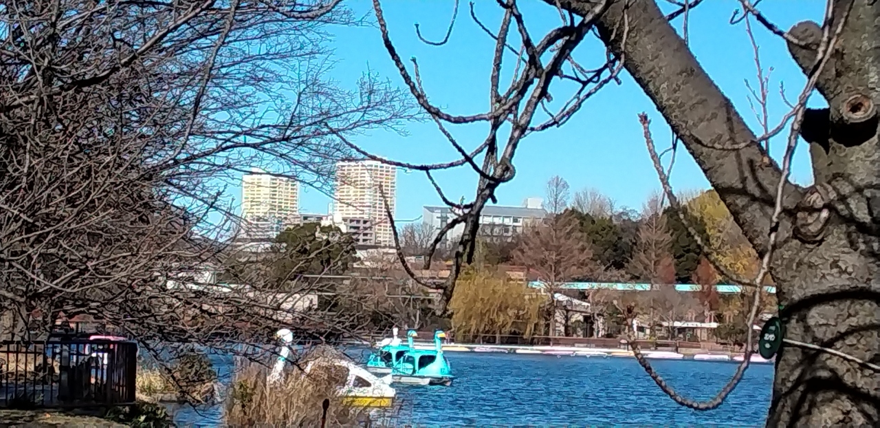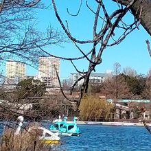 お正月だったので、不忍池には白鳥の足漕ぎボートが出ていました。