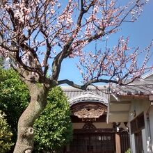 入り口付近の梅の花が満開