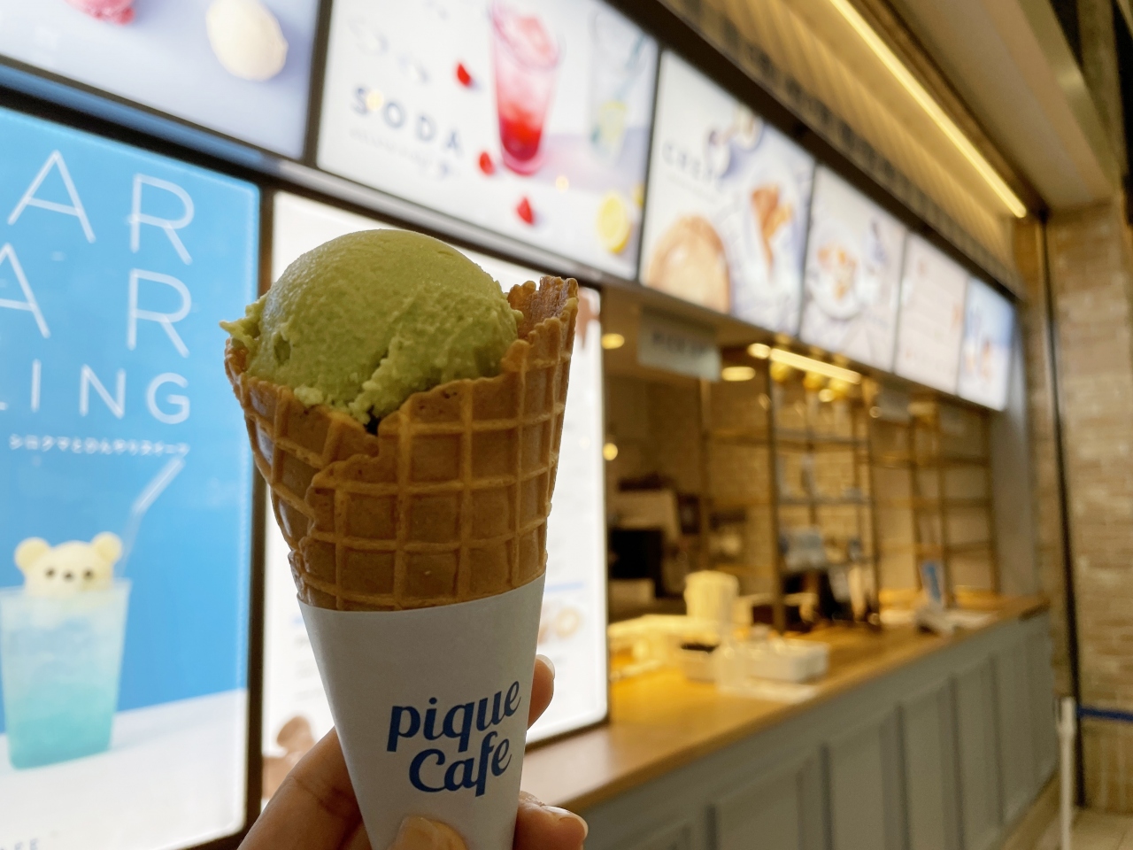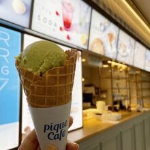 神戸三田プレミアム・アウトレット店のフードコートにお店があります。今年オープンしたばっかりとのことで、水色&白色のストライプのテントと大きなお店のロゴが目印です。クレープがメインのメニューでしたがランチでクレープを食べたのでピスタチオのアイスをデザートにいただきました。ピスタチオ感はそれ程感じませんでしたが、甘さ控えめで食べやすかったです。