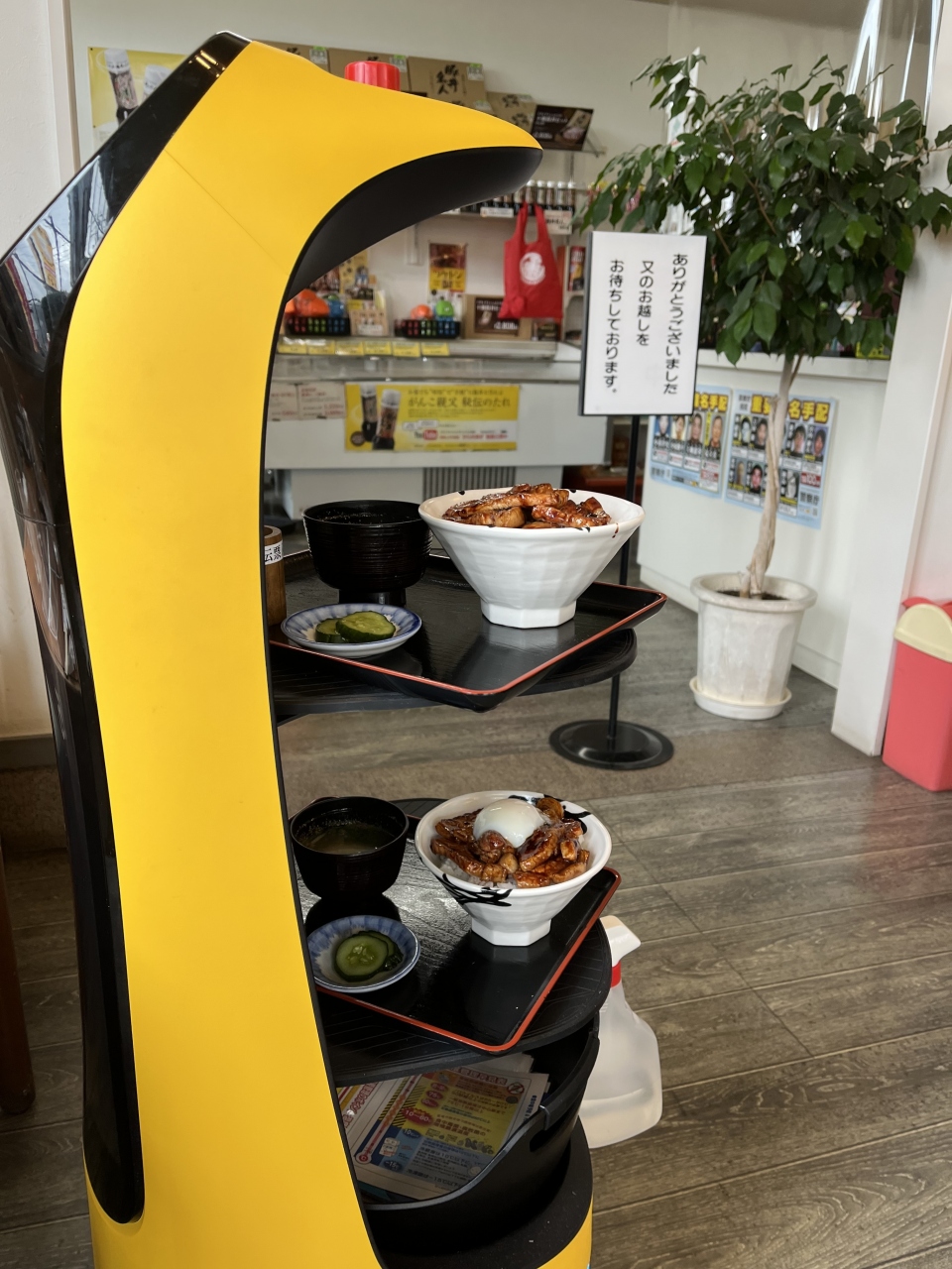 新千歳空港にも店舗があり気になっていたお店でした。清水町にあるこちらのお店が本店になります。豚肉にタレをからめて焼き上げるのが、こちらのお店の特徴だそうで、味がしっかりしていて美味しかったです。お好みでかけるショウガパウダーも良いアクセントになります。また、配膳をロボットがしてくれる点も面白かったです。お店の一角には売店もあり、秘伝のタレなどをお土産にできます。