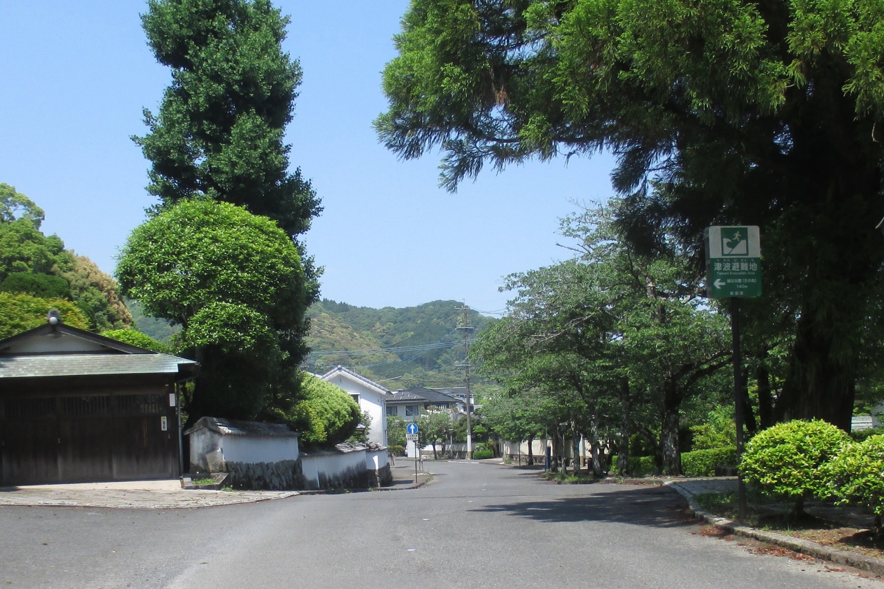 国道217号線の大手前交差点(この辺りに佐伯城の大手門があった様です)から三の丸櫓門前を通り、毛利家の菩提寺である養賢寺辺りまでの約700mを、歴史と文学の道と名付けられているそうです。佐伯市は歴史的環境保存区に指定しているとのことです。歴史的な建物などは分りやすいですが、文学というと「城下町佐伯国木田独歩館」が唯一といったところでしょうか。出来ることならば、電線の地下化をして貰えると、もっと良くなると思いました。