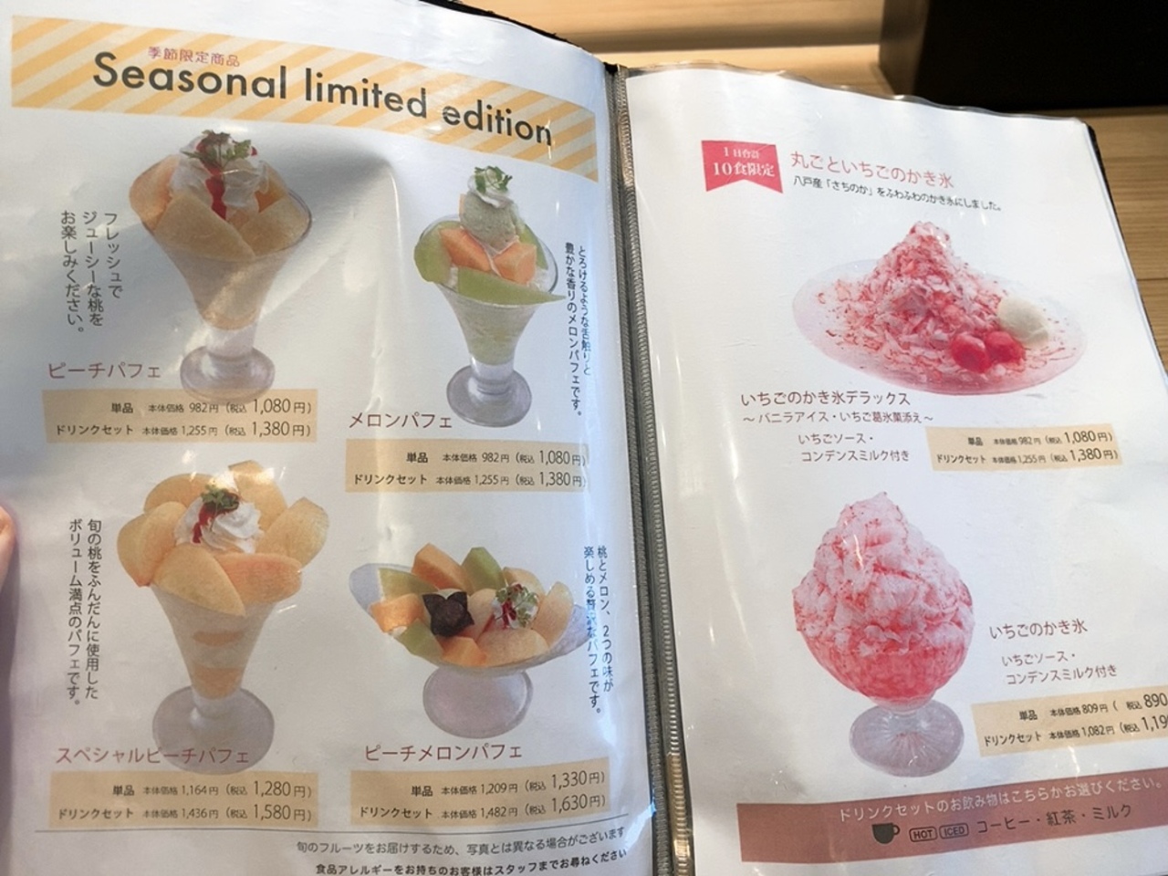季節柄、メロンや桃のデザートが種類が多くあり、私はピーチパフェをチョイス。 桃が丸々1個分?!くらいがのってて、とても美味しかったです。 見た目もとてもキレイでした。