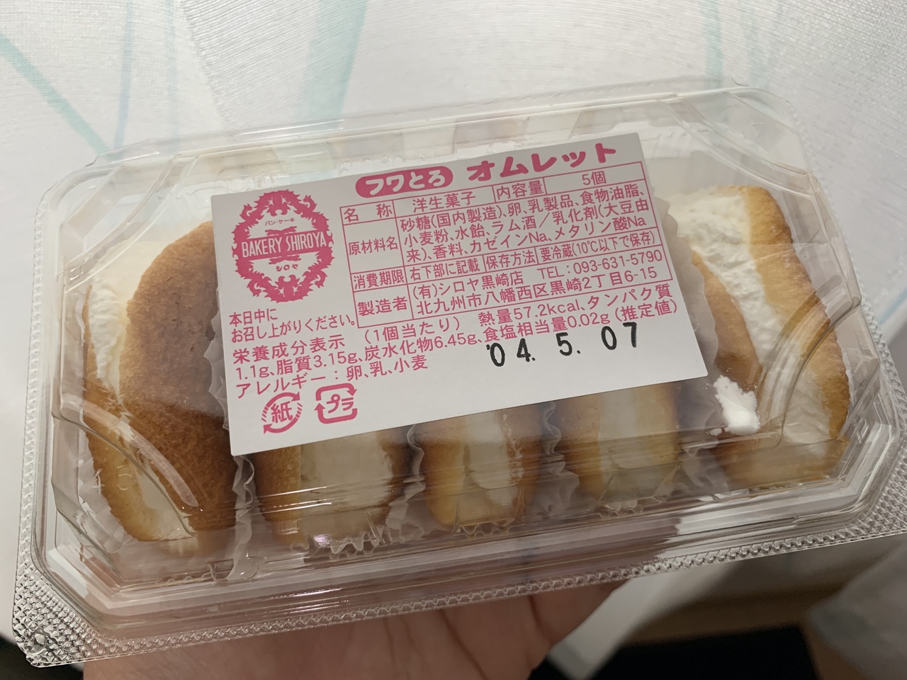小倉駅前の昔ながらのお店でオムレットを買ったとき、美味しさに感動してもう1度食べたいと思っていました。 今回、博多駅構内で売ってたので迷わず買いました。