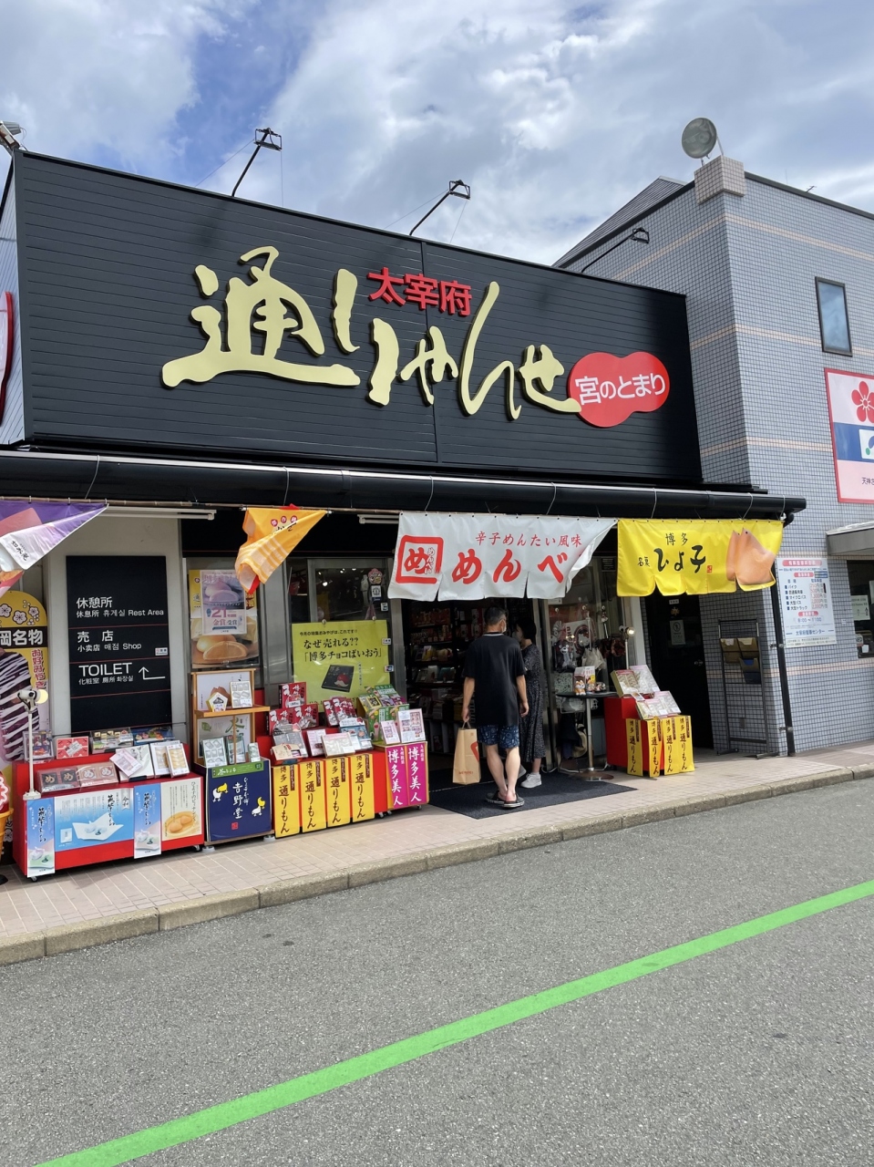 駐車場そばのお土産屋さん。中には無料休憩所もありトイレもある。こんな暑い時期はかなり助かります。外にはソフトクリームが販売していて暑さからついつい買ってしまいました。太宰府を参った後に休憩所で一休みには最適。